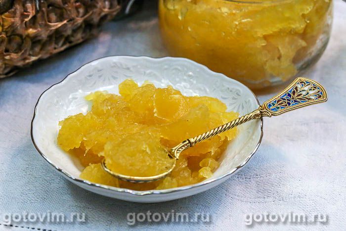 В этом рецепте для загустения джема из ананасов используется агар-агар. В отличие от желатина, агар можно и нужно проваривать с фруктами, чтобы готовый продукт загустел. Ананасовый джем можно подавать к чаю, как обычное варенье, или добавлять в выпечку и десерты.