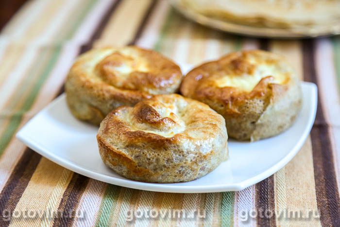 Приготовить тесто для блинов по любому рецепту. Я пекла простые дрожжевые блины.
