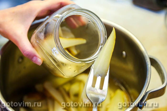 В заранее подготовленные стерилизованные банки разложить дольки груш.