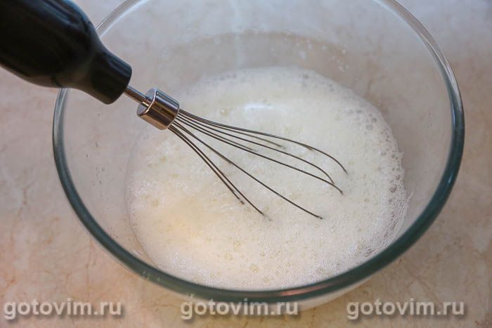 Взбить белки до пышности. Пена должны стать похожа на пивную.