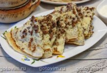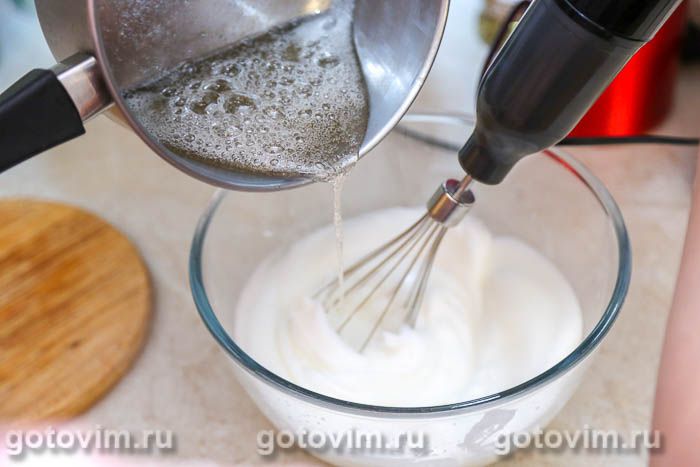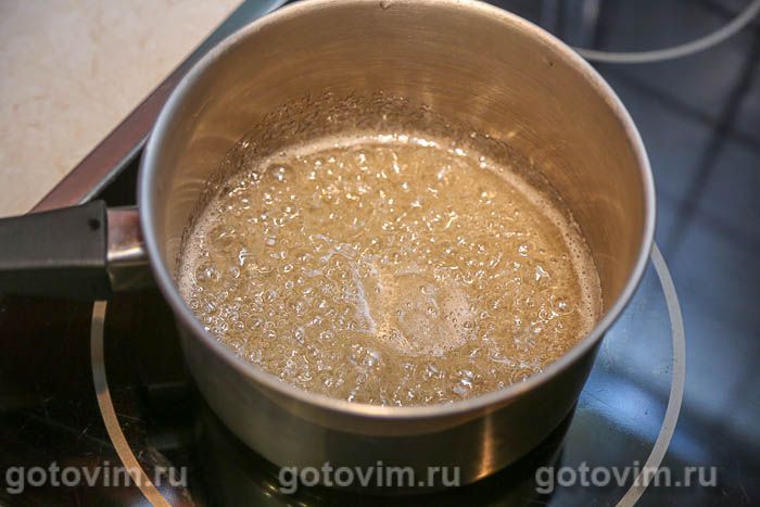 К этому моменту сахарный сироп дойдет до нужной температуры. Снять ковш с плиты.