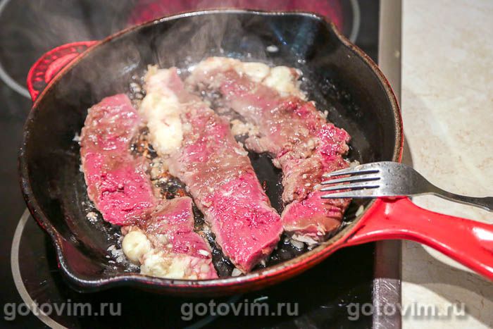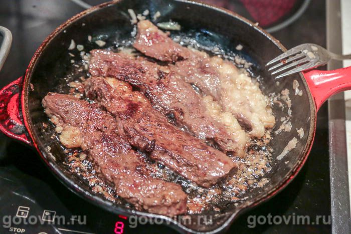 Жарить на среднем огне с двух сторон до появления аппетитной корочки. Стейки из говяжьего сердца подавать сразу же, пока они горячие, т.к. жир быстро застывает. Перед подачей можно дополнительно посыпать крупной солью и свежемолотым черным перцем. Приятного аппетита!