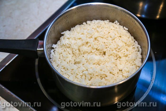 Сварить рассыпчатый рис. Можно сделать это заранее и хранить вареный рис в холодильники, пока не решите готовить это блюдо.