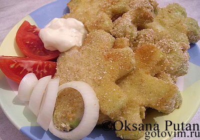 Затем обваливаем в сухарях.