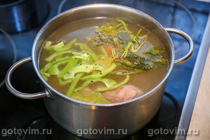 Минут за 15-20 до готовности в бульон добавить соль, чтобы он был чуть пересолен.