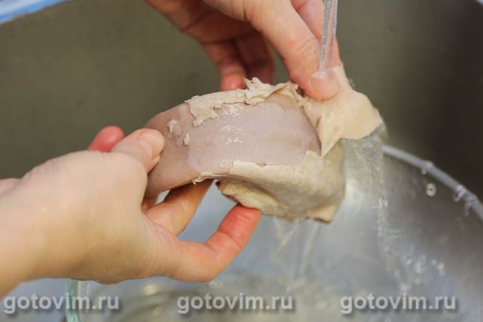 Готовый язык опустить в холодную воду, дать немного остыть, после чего снять шкурку.