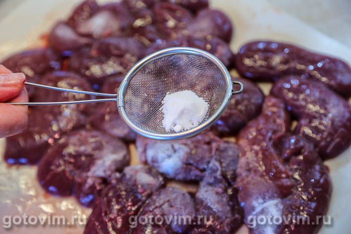 Обычно почки перед приготовлением не только чистят и промывают, но и отваривают. На это требуется время. Можно сократить эту процедуру, заменив варку на обработку содой. Почки молодого барана можно было и не пересыпать содой, но других не было. Поэтому показываю, как быстро подготовить почки с посмощью соды для дальнейшей готовки, не прибегая к варке.