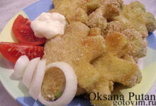 Обжаривать с обеих сторон по несколько минут. Переложить капустный шницель на тарелку и есть горячими с майонезом.