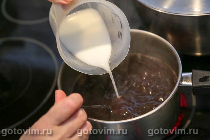 В небольшом стакане размешать 2 ст.л. крахмала с 50 мл холодной воды. Отставить в сторону.
