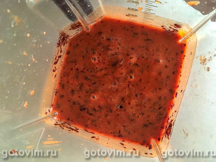 Положить сливу без косточек в чашу блендера. Активировав импульсный режим, превратить фрукты в комковатое пюре.