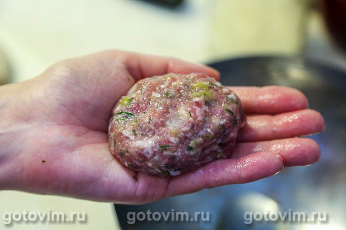 Отделять от общей массы фарша небольшие кусочки. Можно делать это руками, смоченными в холодной воде, или столовой ложкой.