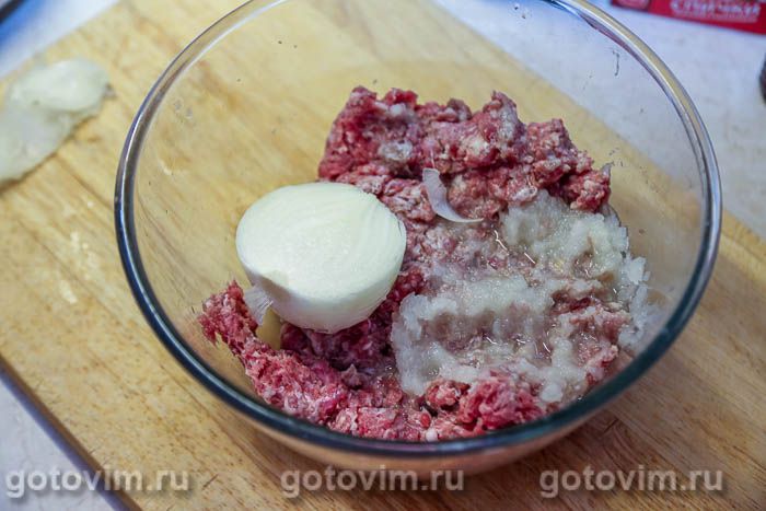 - мясной фарш (смешанный, свинина с говядиной) — 500г