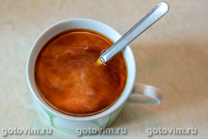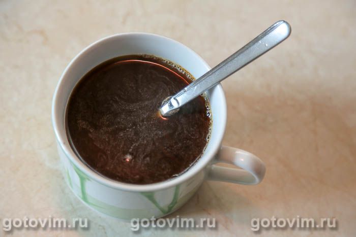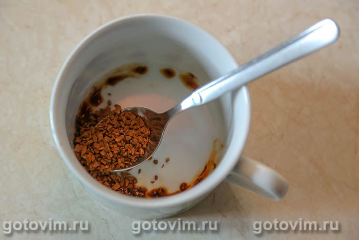 Соотношение растворимого кофе и жидкости (кипятка и молока) вы можете регулировать по своему вкусу. На небольшую чашку будет достаточно 1 ч.л. растворимого кофе.
