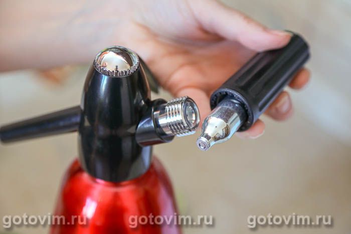 Закрутите крышку сифона согласно инструкции. Следите, чтобы никакие резинки-прокладки при этом не соскочили и не сдвинулись, иначе вода будет брызгать во все стороны и газ из баллончика растратится впустую (проверено на себе, к сожалению).