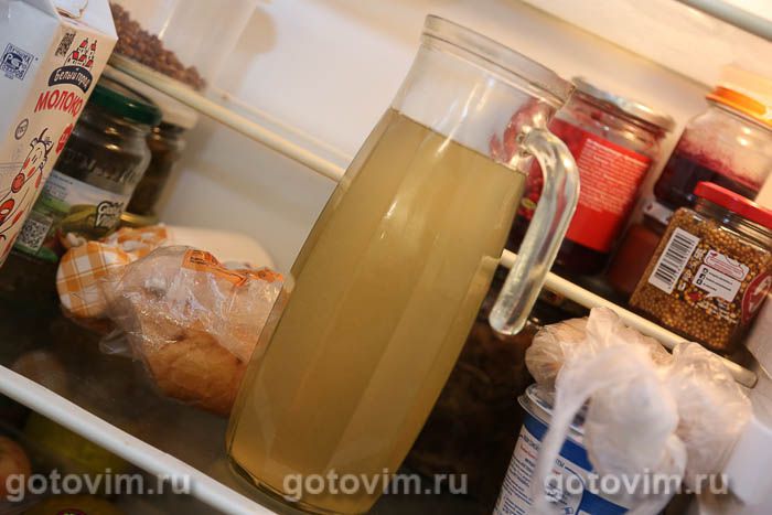 Графин с получившейся жидкостью накрыть крышкой или пленкой и убрать в холодильник на несколько часов. Вкусная газировка должна быть охлажденной.