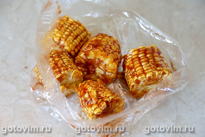 Полить кукурузу получившимся маринадом и оставить при комнатной температуре на 1 час, периодически перемешивая, чтобы маринад равномерно распределился.