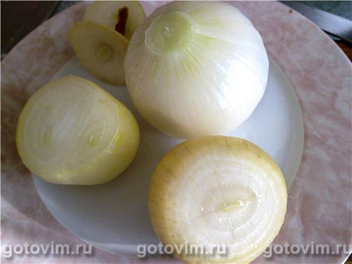 Лук почистить, отварить в воде около 10 минут. Не переварить. Остудить.