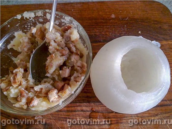 Начиняем луковки пшенной кашей с грибами и мясом.