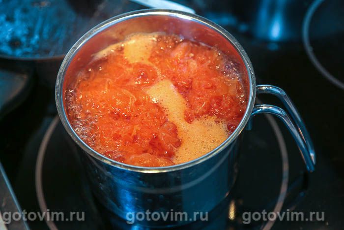 Собранный в миску грейпфрутовый сок убрать в холодильник.