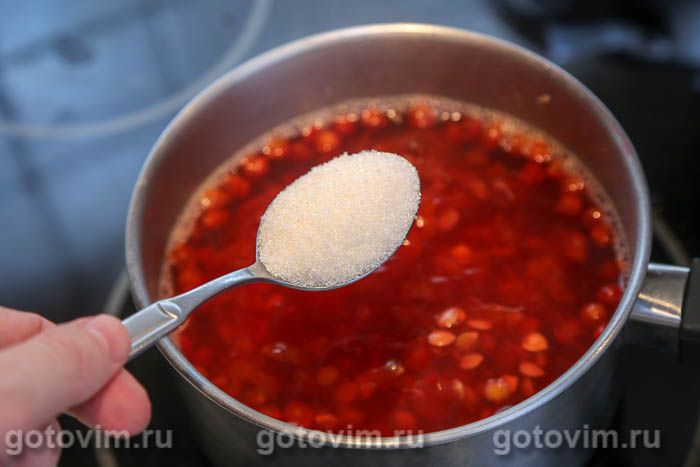 Добавить в отвар сахар, размешать, чтобы кристаллы полностью растворились.