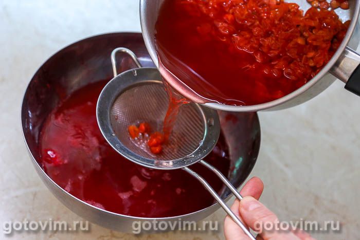 Протереть калину через металлическое сито. Получим скорее не сок, калиновое пюре.