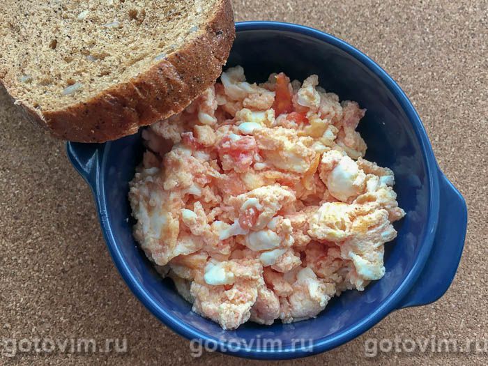 Яйца в смеси с творогом и спелыми сочными помидорами могут стать отличным блюдом для завтрака или ужина. Если обычно помидоры сначала обжаривают, а потом заливают яйцами, то в этом рецепте томатную мякоть сразу смешивают с сырыми яйцами, добавляют творог и выливают на горячую сковороду.