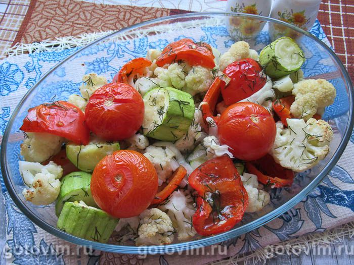 Овощи, запеченные в духовке — блюдо, которое можно приготовить как самостоятельного блюдо или как гарнир к мясу либо рыбе. Чтобы сделать блюдо ярче, используйте разноцветные продукты. Помимо перечисленных овощей, вы можете также взять брюссельскую капусту и брокколи, картофель и тыкву, патиссон и морковь, спаржевую фасоль и баклажаны. Главное, подбирайте продукты, которые имеют одинаковое время приготовления. Если же какие-то из выбранных овощей готовятся дольше, можете их сначала слегка отварить, а уже потом запекать.