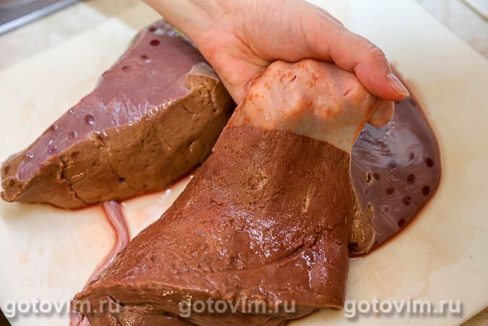 После такой простой процедуры пленка легко отделяется от печени.