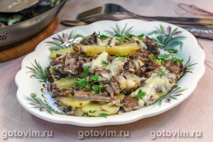 Вареный картофель нарезать на четвертинки и обжарить на растительном масле до румяной корочки.