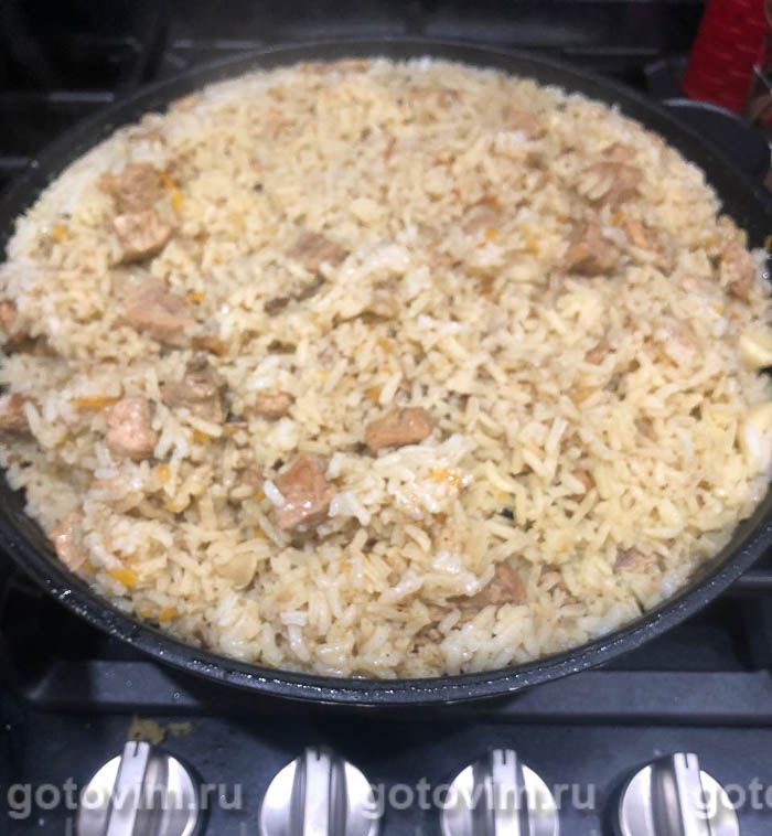 Когда нет времени готовить плов по всем правилам, на помощь приходит упрощенный вариант – рис с мясом на сковороде. Всё очень просто: нарезанное кусочками мясо обжариваем с луком и морковью, засыпаем промытым рисом, доливаем воды и доводим до готовности под крышкой. Какие взять пряности? Да те же самые, что и для плова. Или ограничьтесь зирой (кумином).