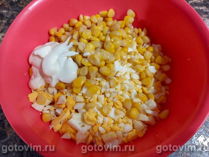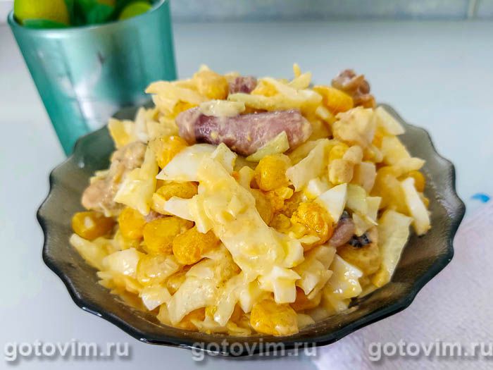 Салат из капусты и морского коктейля и кукурузой. Рецепт с фото