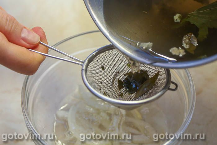 и нарезанный тонкими полукольцами лук. Оставить мариноваться на несколько часов.