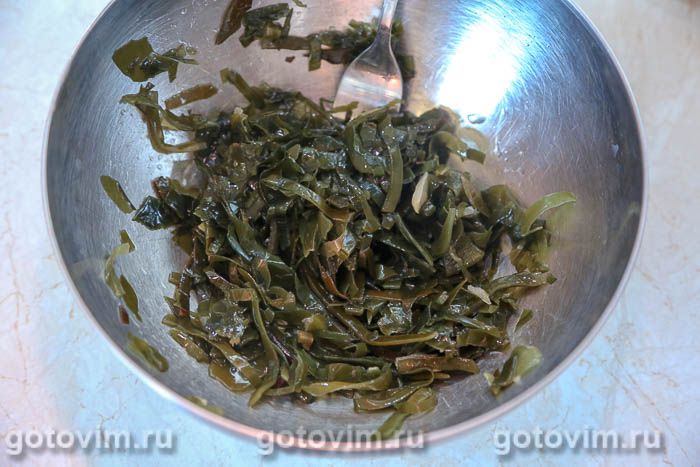 Консервированная морская капуста (из банки) отлично сочетается с обжаренным на чесночном масле морским коктейлем. Получается, что такой салат из морского коктейля, можно смело подать как легкий ужин. Для салатной заправки достаточно смешать хорошее растительное масло со свежевыжатым лимонным соком.