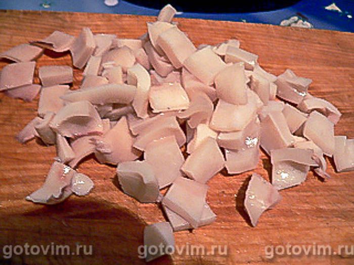Кальмара очистите и отварите для салата.
