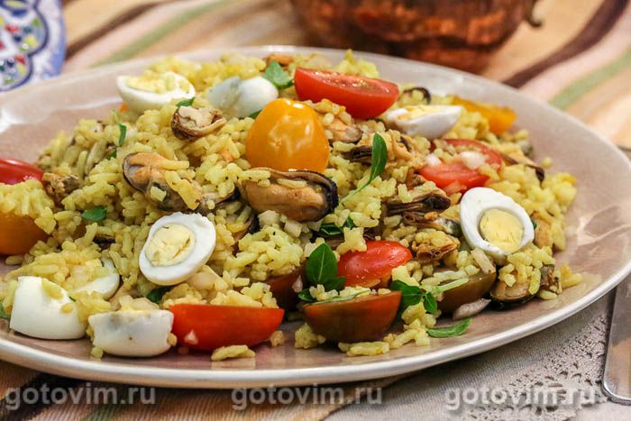 Немного вареного риса, баночка консервированных мидий, помидоры черри и перепелиные яйца — вот основные ингредиенты простого и вкусного салата, который можно приготовить и в праздник, и в будни. В рецепте салата нет майонеза, зато есть вкусная заправка на основе растительного масла и бальзамического уксуса. Если нет бальзамического, возьмите красный винный или любой на ваш вкус.