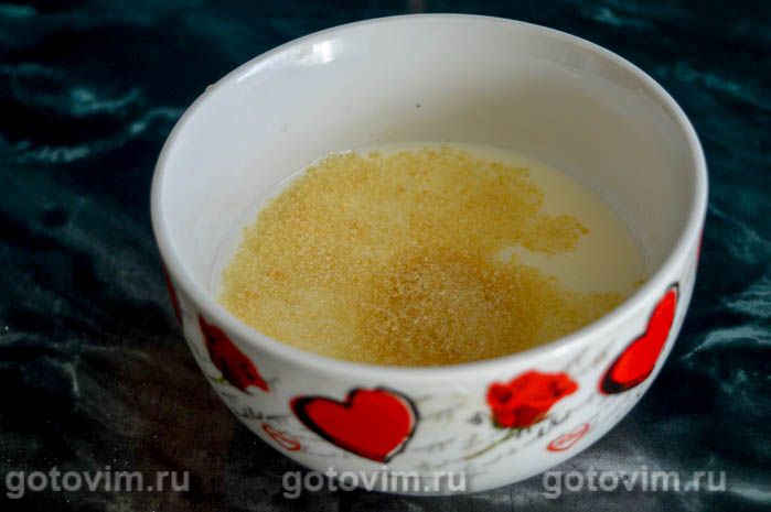 В глубокую миску наливаем воду, засыпаем желатин. Делаем все по инструкции, на упаковке с желатином. Убираем емкость в сторону на 25 минут.