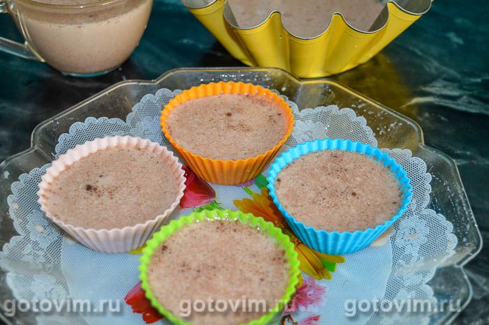 Полученную массу разливаем по формочкам, ставим в холодильник до полного застывания шоколадного желе. Украшаем десерт ягодами и подаем на стол. Приятного аппетита!