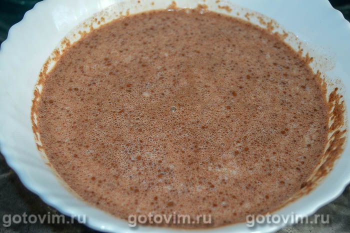 В отдельную тарелку выливаем молоко. Добавляем сахар, какао, ванильный сахар. Все хорошо перемешиваем, для удобства можем воспользоваться блендером.