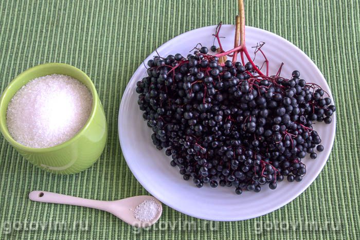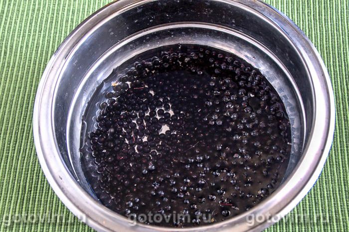 Подготавливаем ягоды. Очищаем бузину от веточек.