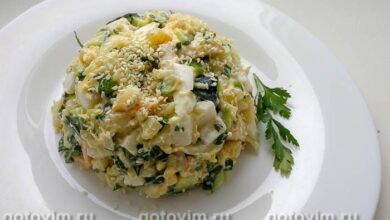 Салат с кальмарами и крабовыми палочками. Рецепт с фото