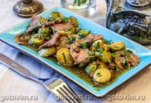 Готовим говяжьи ребрышки вместе с гарниром (нарезанным дольками картофелем) в рукаве для выпечки. Сначала говядину маринуем в соевом соусе с…