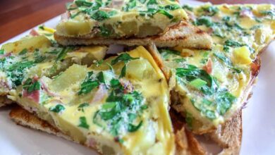 Омлет с картофелем, ветчиной и шпинатом. Рецепт с фото