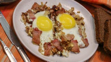 Плотный завтрак легко приготовить из оставшейся в вечера вареной/запеченной курицы. Добавьте к ней сладкий красный лук, слегка обжарьте и залейте…