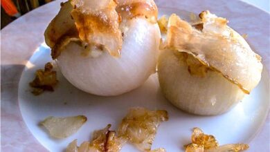 Лук, фаршированный пшенной кашей с мясом и салом. Рецепт с фото