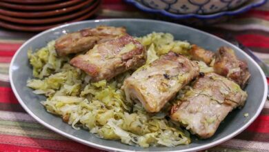 Свиные ребрышки с молодой капустой, запеченные в пакете. Рецепт с фото