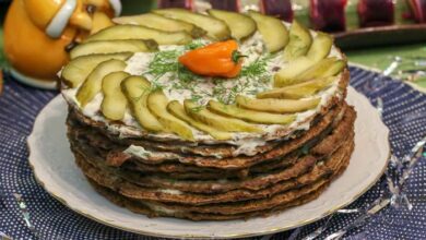 Печеночный торт с яркой начинкой из карамелизированного лука и вяленой клюквы, мгновенно навевает мысли о зимних праздниках. Выбирайте печень для…