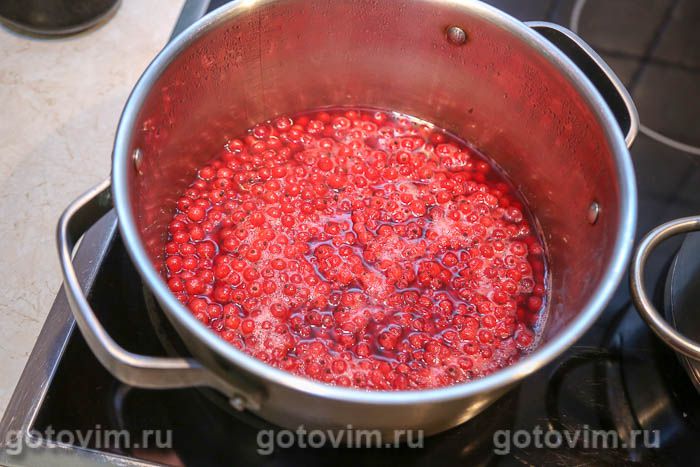 Пересыпать смородину в кастрюлю, на дно налить примерно 1 стакан воды, накрыть крышкой и поставить на средний огонь. Дождаться, когда вода закипит, и все ягоды полопаются.