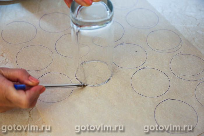 На пергаменте для выпечки рисуем кружочки диаметром 5-6 см.