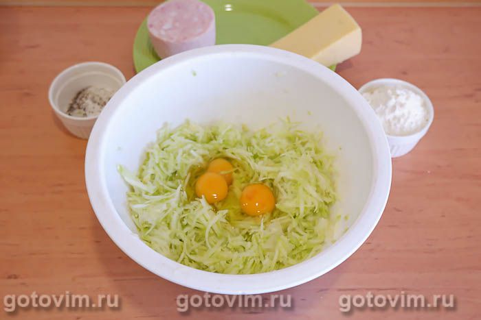 Примешать к кабачкам сырые яйца.